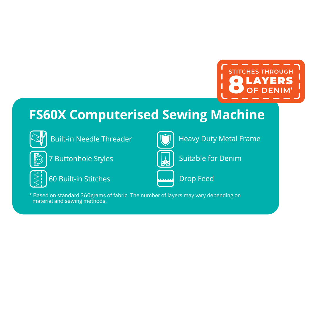 Whether you are a beginner or an experienced sewer, the FS60X is suitable for every skill level. Its durability, range of stitches, and customization options make it a reliable companion in your sewing room.